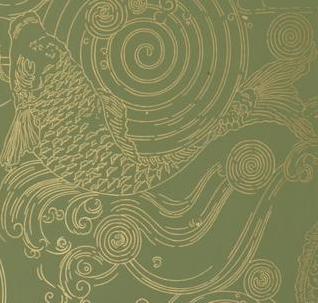 The Carp Stencil This lively pattern was originally published by Candace Wheeler in the early 1900's as a design for a bathroom stencil. It is a two piece stencil, which allows for mixing shades and colors in the paints. The print shown here has two greens in the surround and the shell, and two blues used on the fish itself, with an effort made to maintain variety of tones from one application to the next. This stencil has also been effectively painted using just one color with different shading to highlight the figures. To achieve an artistic result, we suggest experimenting first with colors on posterboard before starting to work on the walls. |