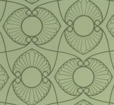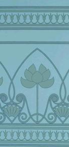 Thebes Roomset An American design patterned after the Napoleonic archaeological drawings of patterns in the ancient Egyptian ruins at Thebes. Inspired, perhaps, by the celebrated Egyptian collection at the Brooklyn Museum of Art, or from a print in a book on historic ornament, Jones adds her own interpretation to the original interlacing Lotus arches with a simple motif of a standing lotus blossom filling the center of each arch, drawn with the simplicity of the Arts & Crafts Movement. In Jones interpretation of this ancient design, she also brings forward the characteristic curves of the Art Nouveau, the latest fashion from Europe. 27" wide with a self match repeat of 27" (9" high figure). 5 yard long rolls, covering 30 square feet. Hand printed in New England. Documentary coloring of shades of teal blue. $70.00 per single roll. |
