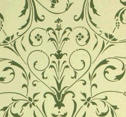 Florentine Major, based on delicate Renaissance arabesques that were highly popular in late 19th and early 20th century interior design. This version has a hint of Art Nouveau in the spring of the curves, and there is an element in the design that creates a formal asymmetry in the overall pattern, making a lively, but elegant and sophisticated design. 21" wide with a self match repeat of 21". 6 yard long rolls, covering 30 square feet. Hand printed in New England. Metallic gold on Thebes blue, or a medium green on cream. $60.00 per single roll. |