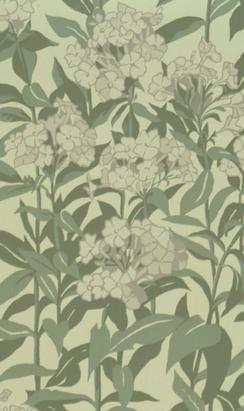 Summer Phlox is familiar to most New England gardeners as a hardy and showy flower from late summer, filling in borders and flower beds after the spring flowers fade. Large floral prints became highly fashionable in the late 19th and early 20th century, especially for walls of large hallways (stairhalls), and dining rooms (often above major panelling), particularly in late Queen Anne Revival and Colonial Revival houses. It is equally at home with natural woodwork or with woodwork painted off-white. 21" wide with a drop match repeat of 21". 6 yard long rolls, covering 30 square feet. Hand printed in New England. Shades of sage green with greyed Lavender. $90.00 per single roll. |
